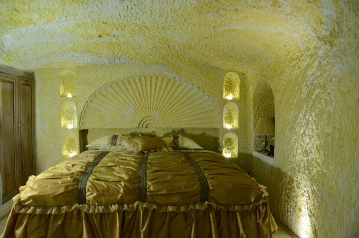 Deluxe Cave Room. This double room features a minibar, bathrobe and sofa. Rooms are 45 square metres. ;